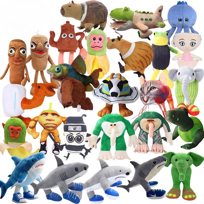 外国版山海经木棍人香蕉猩猩挂件可发声抽象玩偶跑鞋鲨鱼毛绒玩具