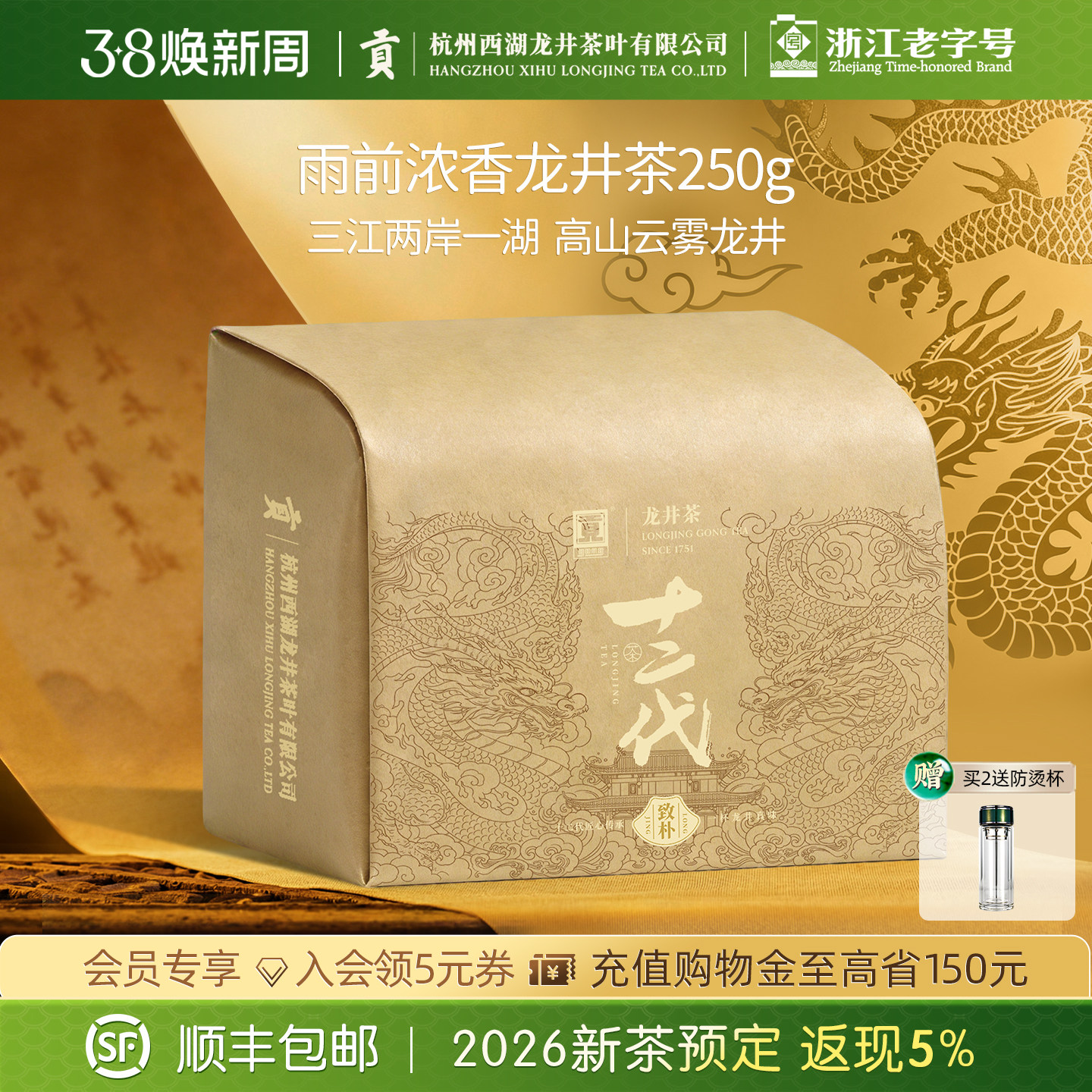 2026新茶预售西湖牌雨前浓香龙井茶正宗250g春茶绿茶茶叶散装官方