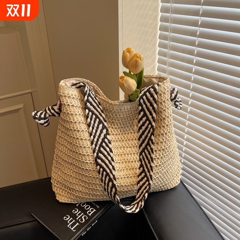 慵懒风大容量民族风包包女夏海边度假编织包草编宽肩带通勤托特包