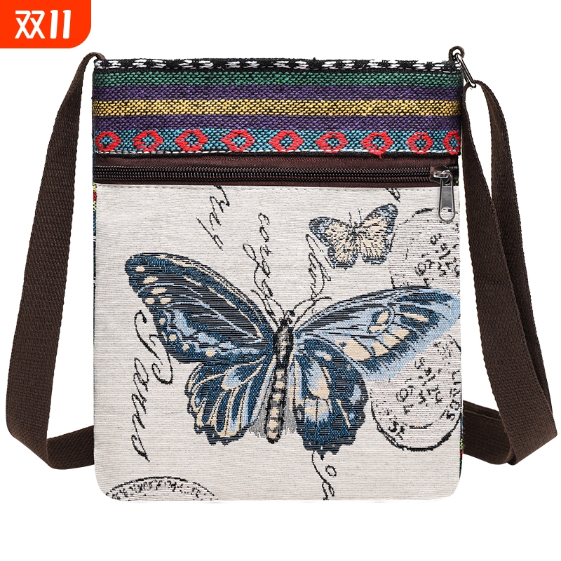 民族风包包逛街单肩小挎包斜挎包织布可爱百搭女士手机斜挎帆布包