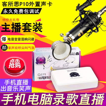客所思p10声卡白盒直播设备全套装唱歌电脑搏击专用主播录音话筒