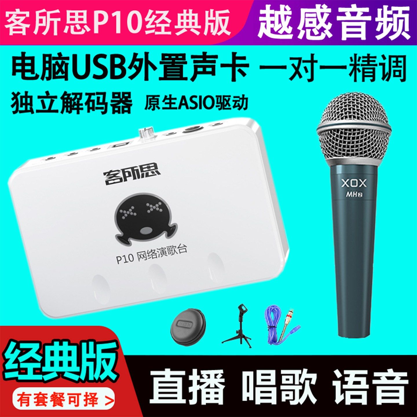 客所思XOX P10网络K歌USB外置独立电脑K歌直播主播声卡电容麦套装