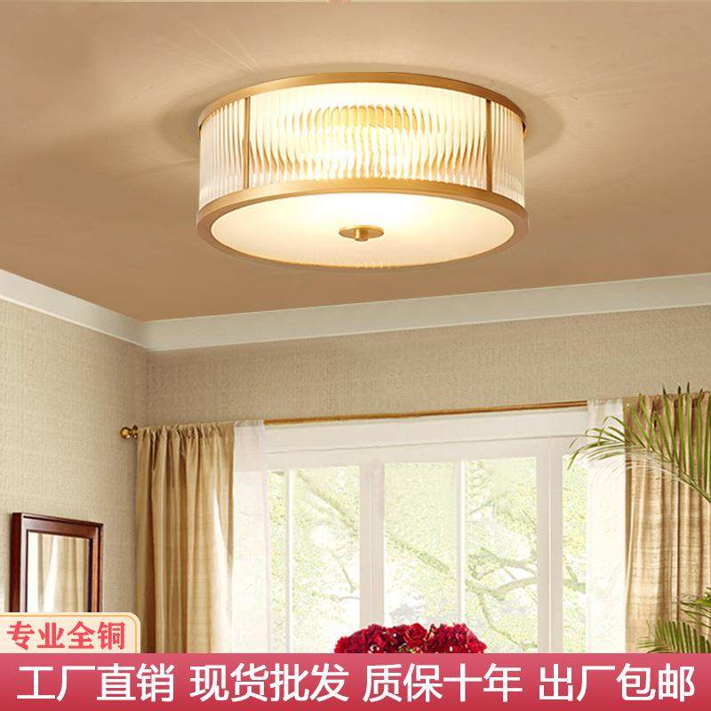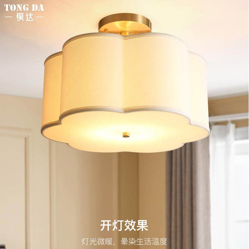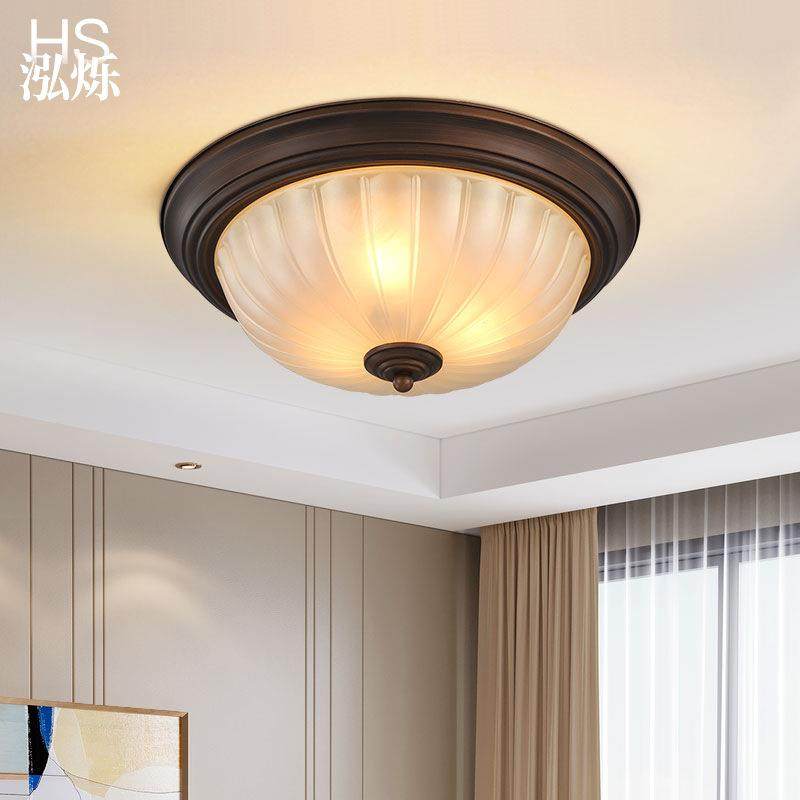 美式轻奢全铜卧室中古风房间吸顶灯现代简约北欧主卧儿童房灯灯具
