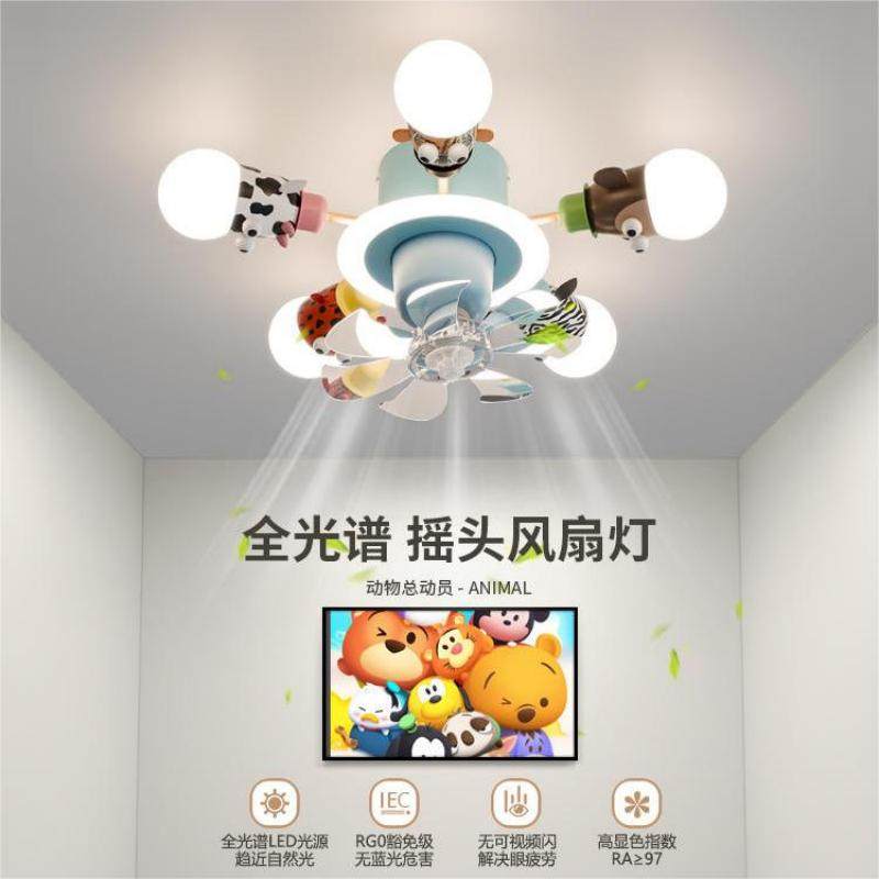 儿童房灯led风扇灯男孩卧室吸顶灯女孩北欧卡通动物美式吊扇灯具
