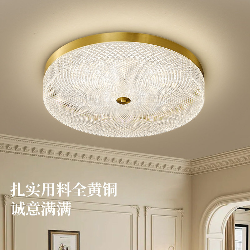 美式吸顶灯全铜简约客厅餐厅灯儿童房间圆形水晶卧室led灯具无