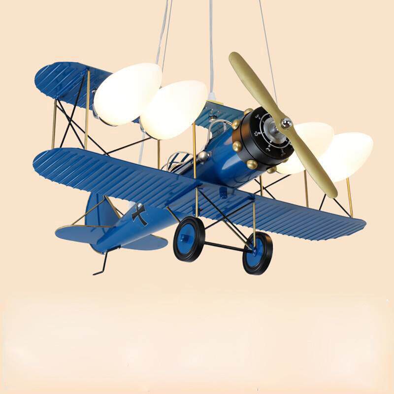 儿童房吸顶灯具男女孩幼儿园创意个性美式卧室工业风铁艺飞机吊灯