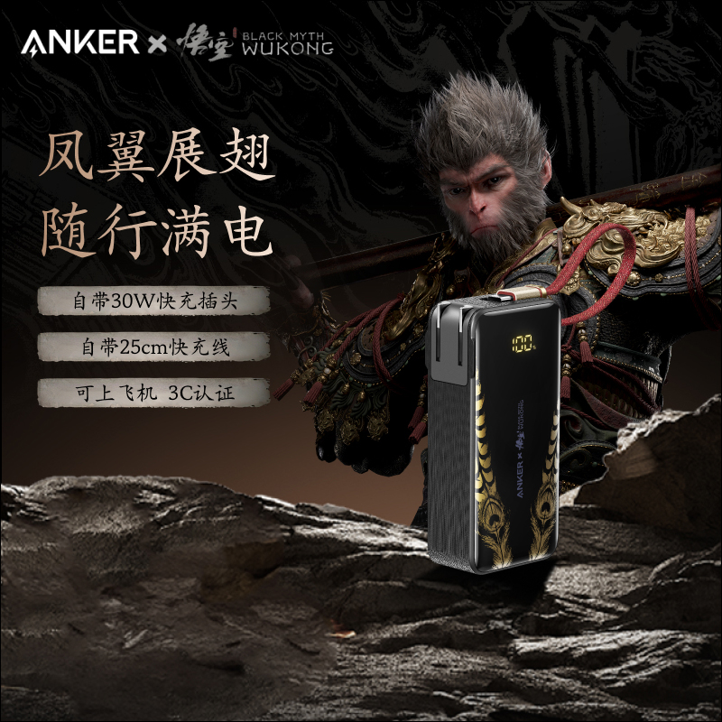 【安克黑神话悟空联名】Anker安克三合一任逍遥充电宝带插头自带线移动电源3C认证可上飞机适配安卓苹果17