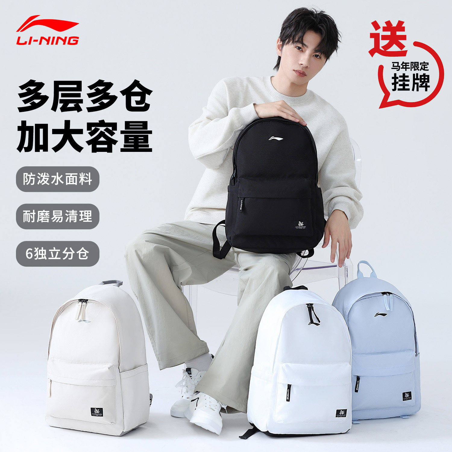 李宁双肩包男初中高中书包2025新款大容量电脑背包大学生女旅行包