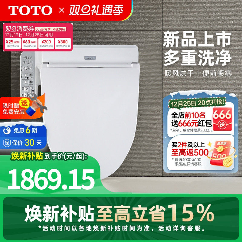 ΤΟΤΟ智能马桶盖板卫洗丽家用即热清洗加热多功能TCF3A460/260