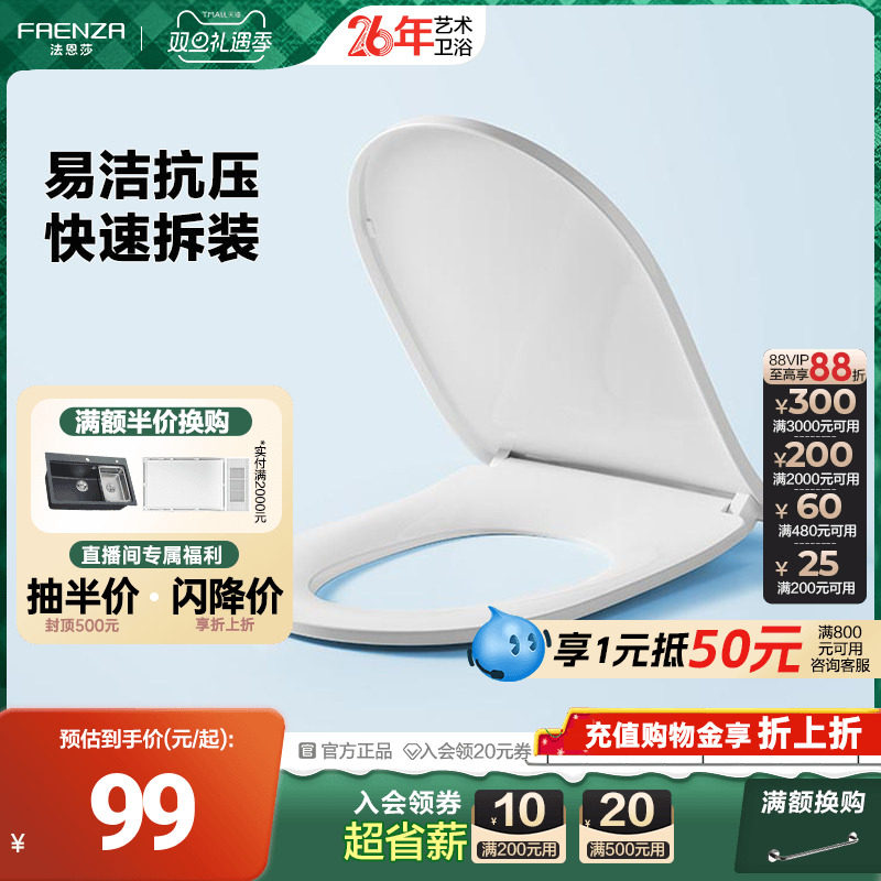 HEGII/恒洁马桶盖板静音缓降耐脏易清洁座圈抗老化卫浴坐便器盖板