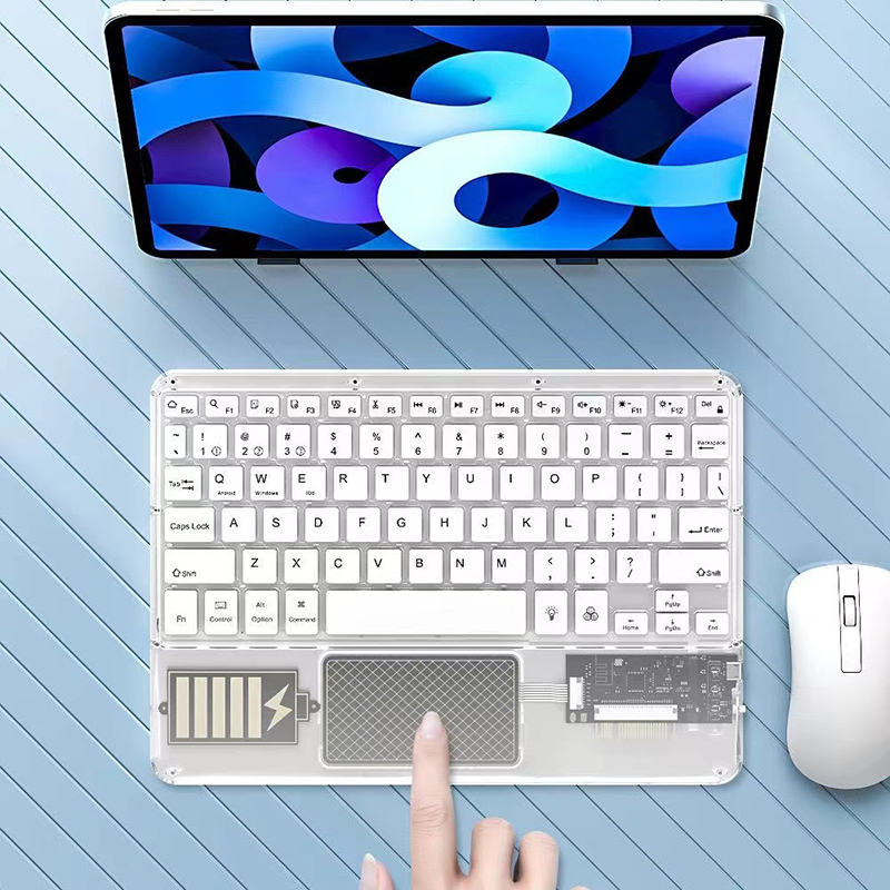 蓝牙键盘手机笔记本通用办公键盘多彩色RGB外接无线蓝牙透明键盘
