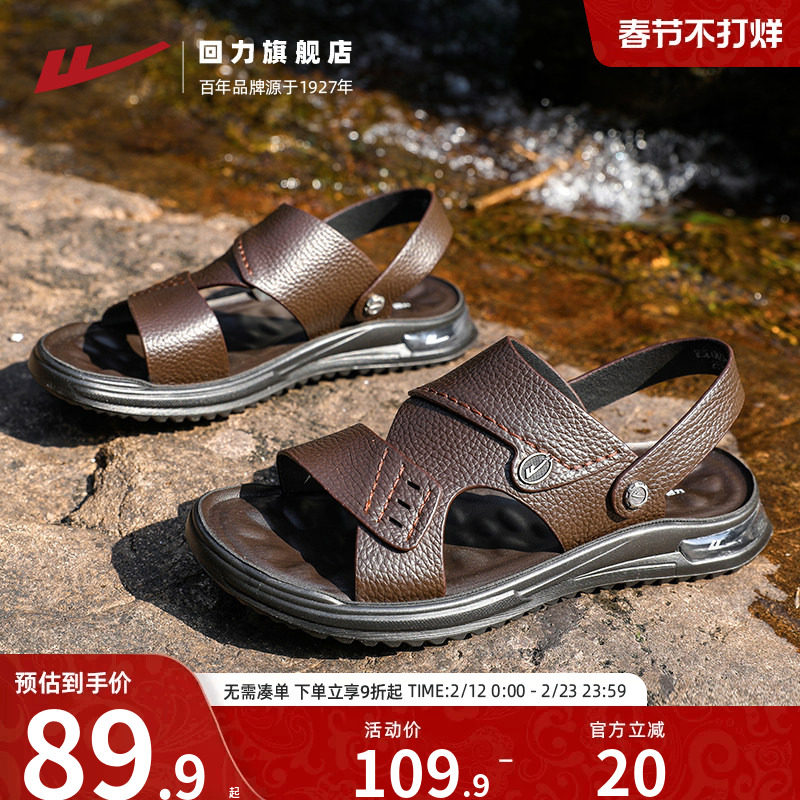 回力官方旗舰店凉鞋男款夏季新款牛皮沙滩鞋男士真皮爸爸凉拖鞋男