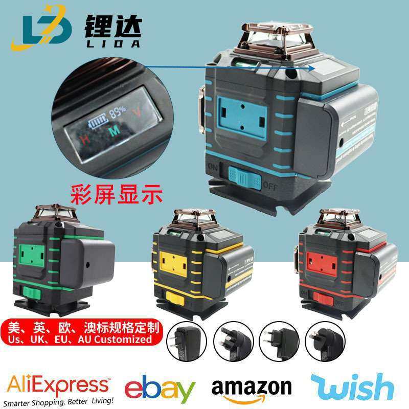 绿光12线16线3D激光水平仪 红外线平水仪高精度贴墙贴地仪数显