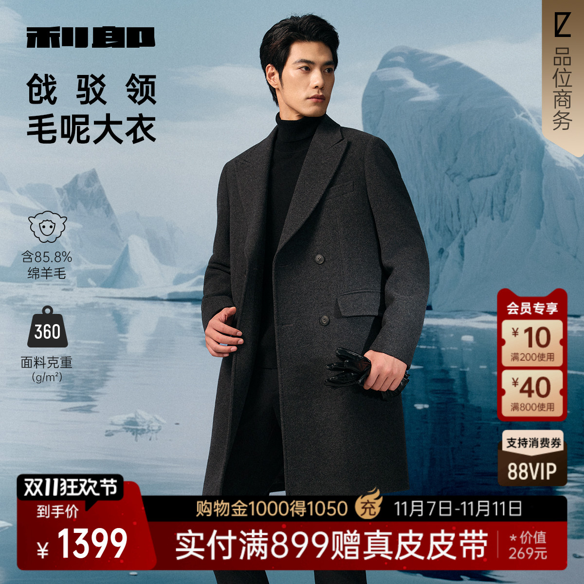 【翻领双排扣】利郎官方中长款毛呢大衣男士2025冬季男装羊毛外套