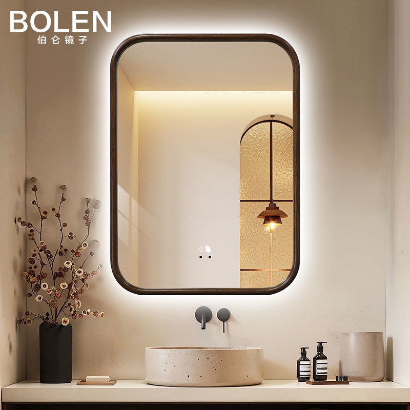 伯仑 中古风智能镜触摸屏中式卫生间镜子led复古化妆镜圆角防爆