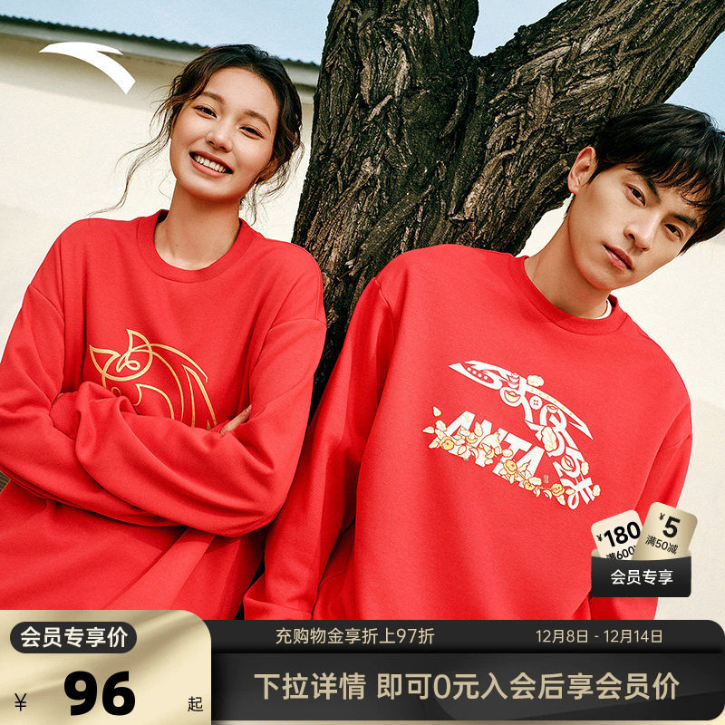 安踏套头卫衣男女装冬季新款印花情侣宽松圆领长袖上衣172528703
