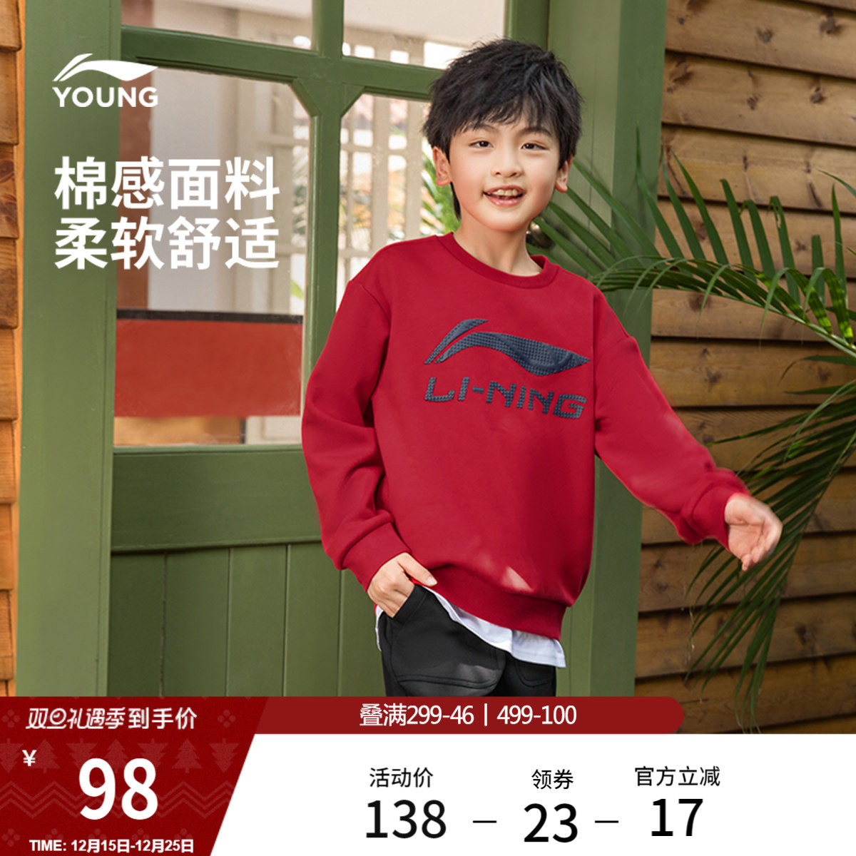 李宁童装卫衣男女小大童运动生活系列套头衫长袖秋冬休闲针织童装