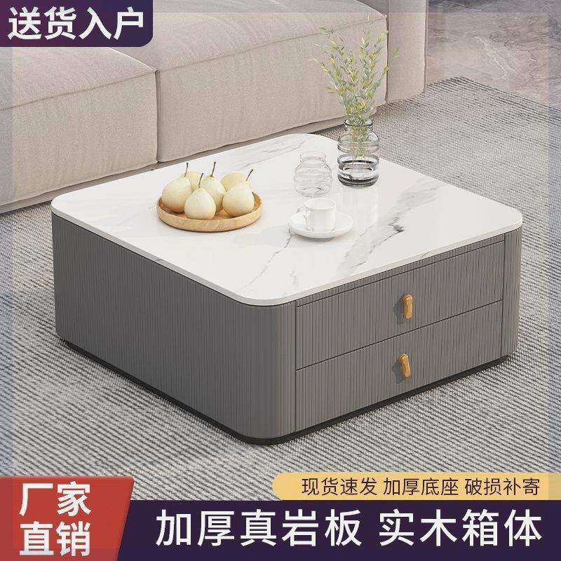 岩板茶几轻奢现代简约方形小户型客厅实木家用软包极简大理石茶桌