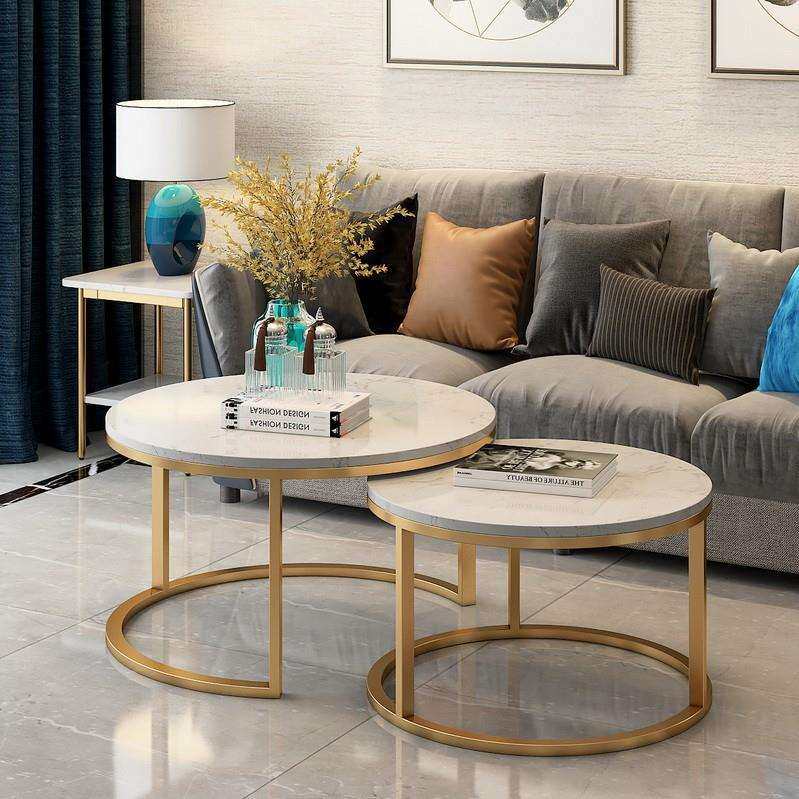 现代简约轻奢大理石茶几组合网红北欧圆形小茶几客厅创意沙发茶几