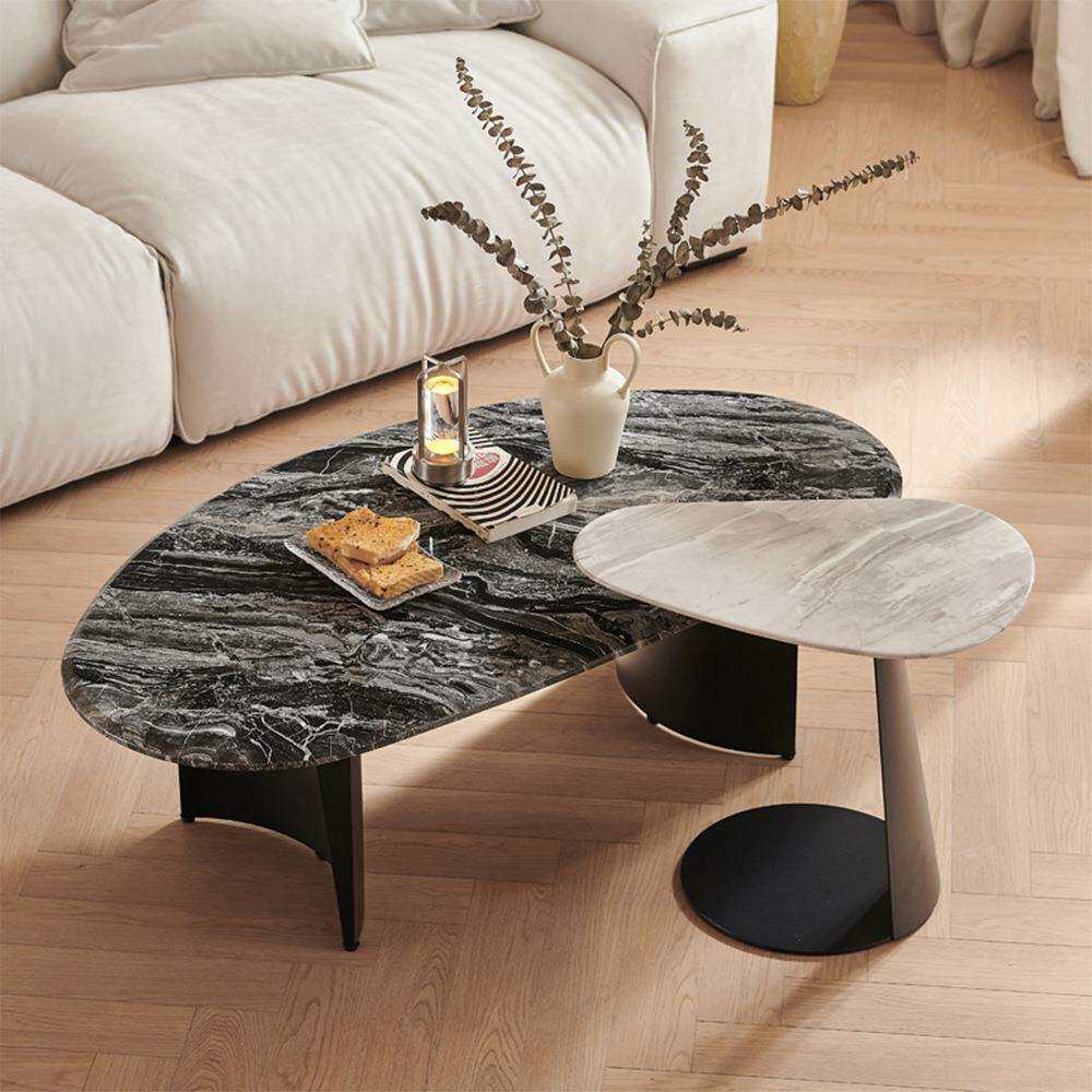 意式高端岩板茶几轻奢现代简约客厅家用大理石小户型方形高低组合