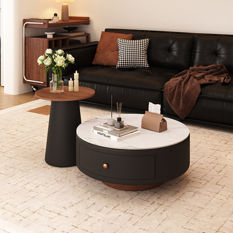 北欧大理石茶几简约现代茶几电视柜组合轻奢小户型多功能茶几圆形