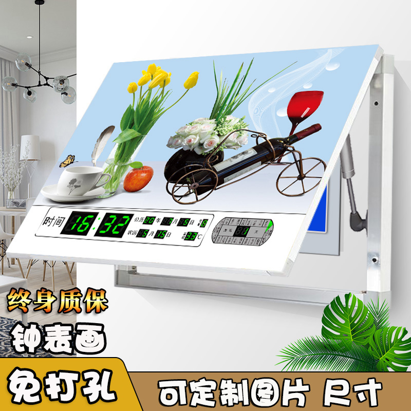 热销电表箱装饰画免打孔可推拉带钟表配电箱电闸盒液压上翻开遮挡