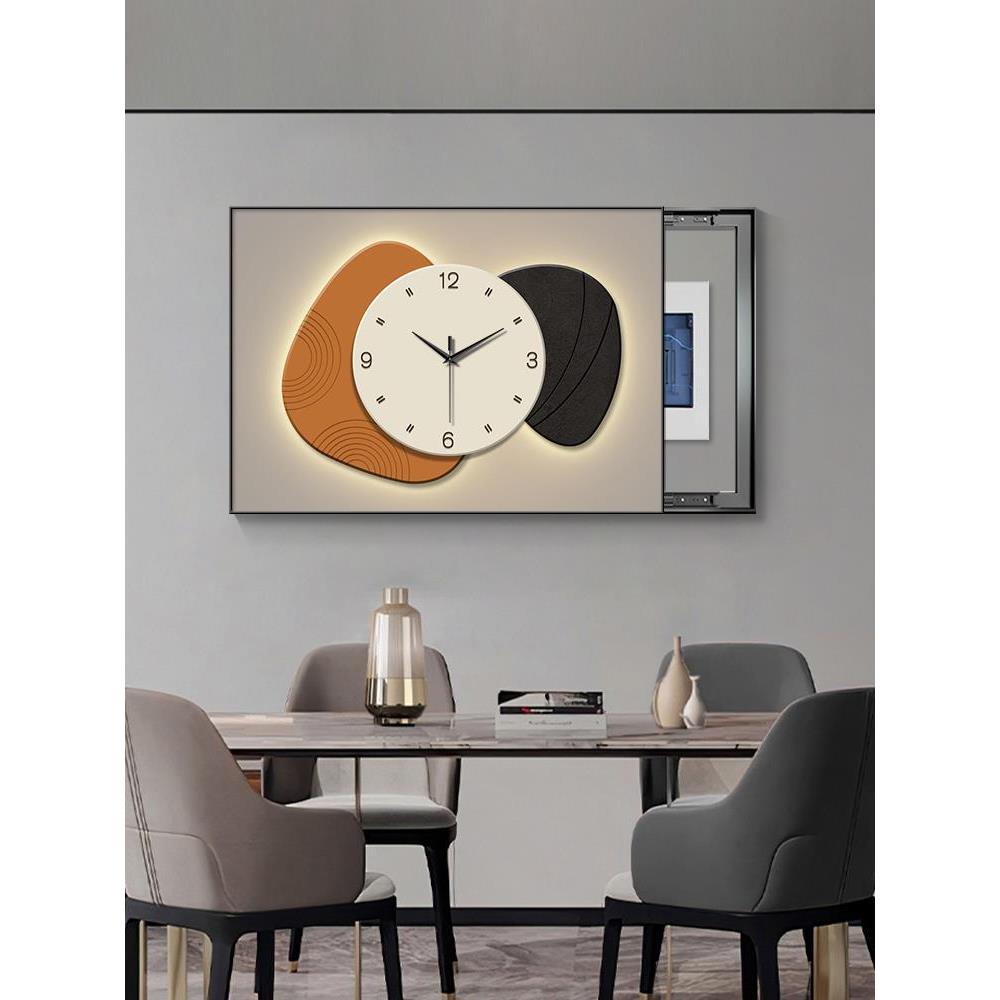 侘寂风电表箱装饰画画带钟表推拉式配电箱遮挡电闸盒开??关盒饭厅