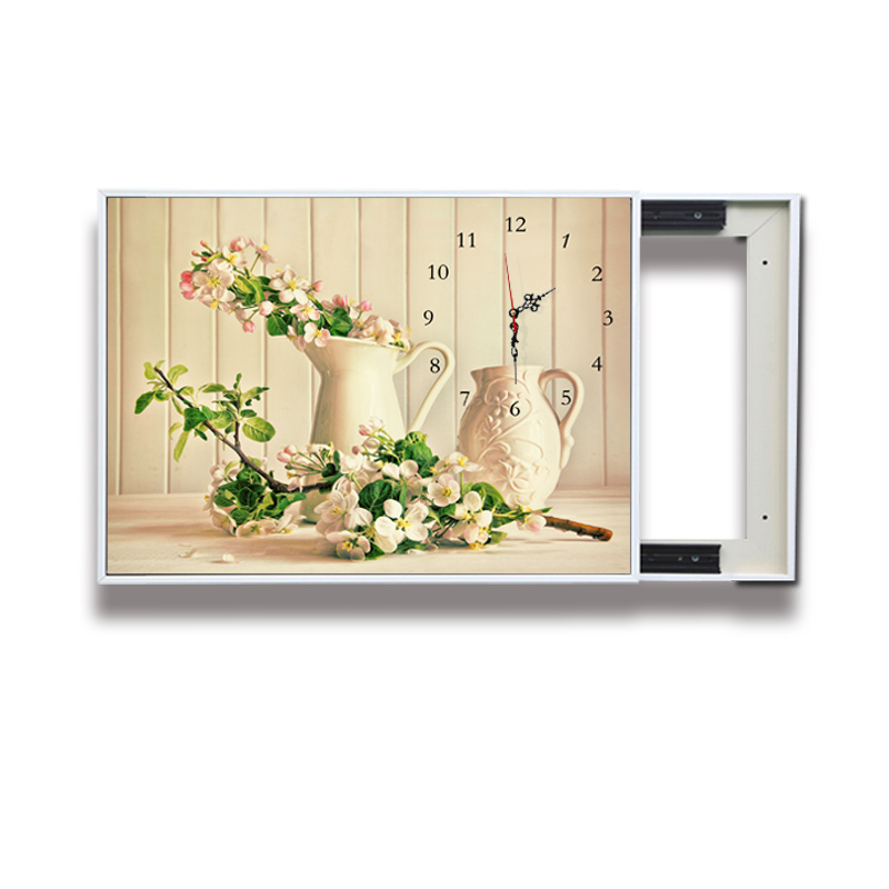 中古风电表箱装饰画带钟表苹果配电箱遮挡画开关盒弱电箱推拉挂画