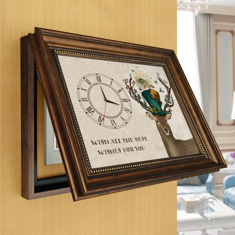 速发风压表箱装饰画带钟表餐厅强弱配电箱开电遮挡画推拉液关挂画