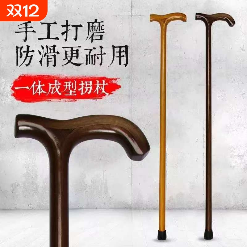 拐杖老人防滑轻便实木老年人防摔倒拐棍四脚专用助力手杖木头女士