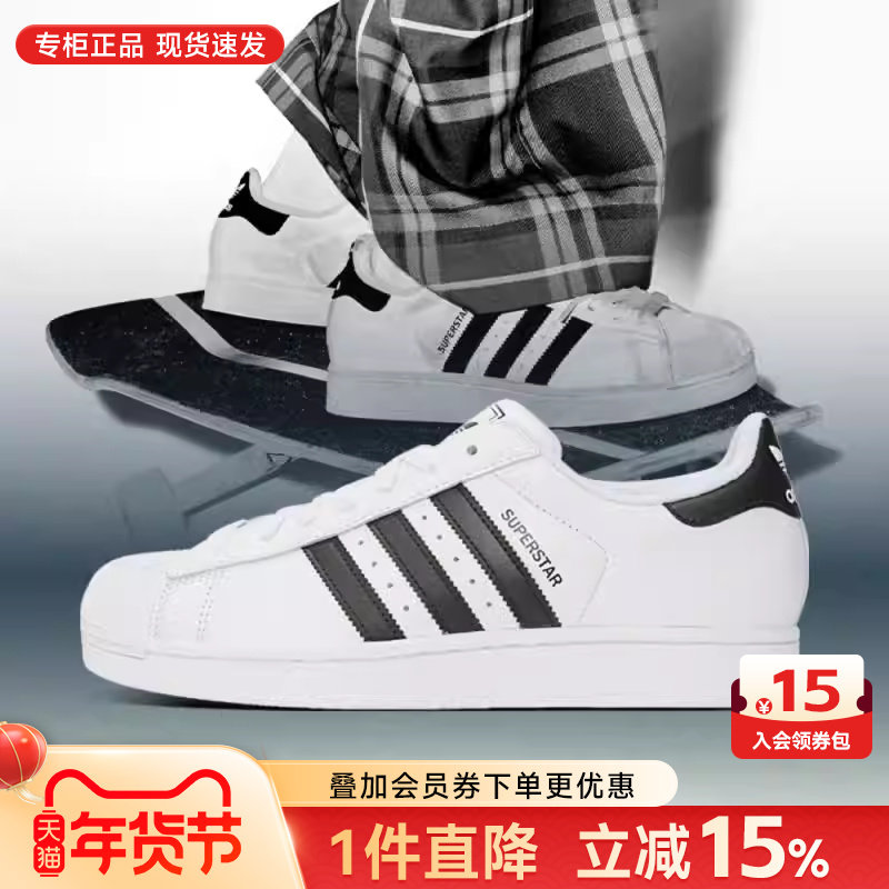阿迪达斯三叶草贝壳头男鞋女鞋春季新款低帮板鞋SUPERSTAR 休闲鞋