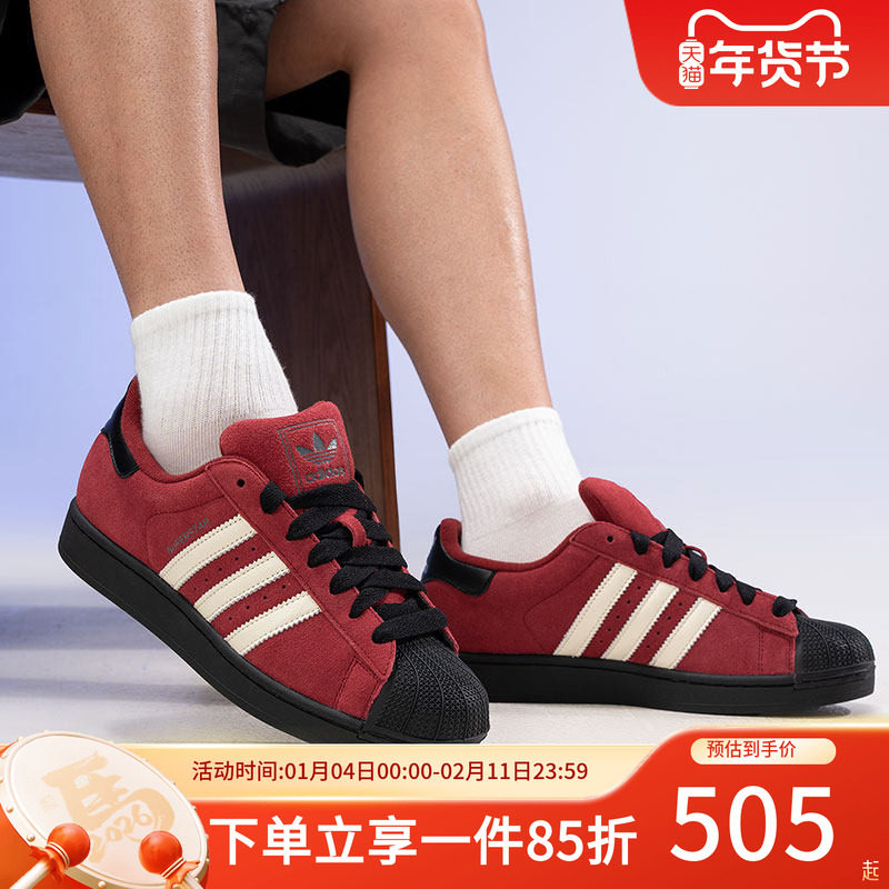 阿迪达斯三叶草贝壳头新年款红色男鞋女鞋25新款运动鞋休闲鞋板鞋