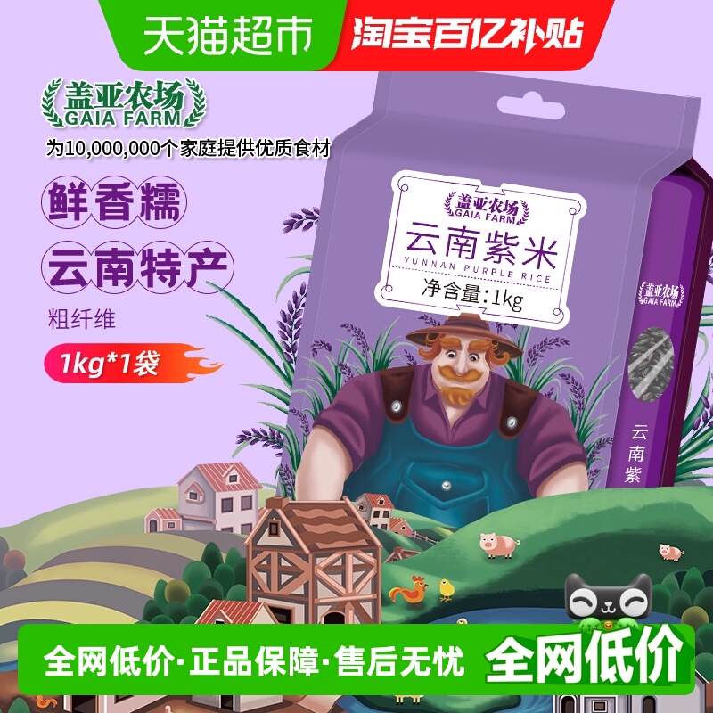 盖亚农场云南紫米1kg鲜香软糯饱腹代餐云南特产健康营养便捷食用