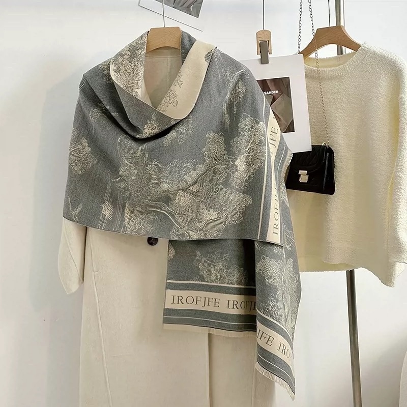 2025秋冬季款百搭双面仿羊绒大版披肩版百搭加厚保暖护脖围巾-Yz1