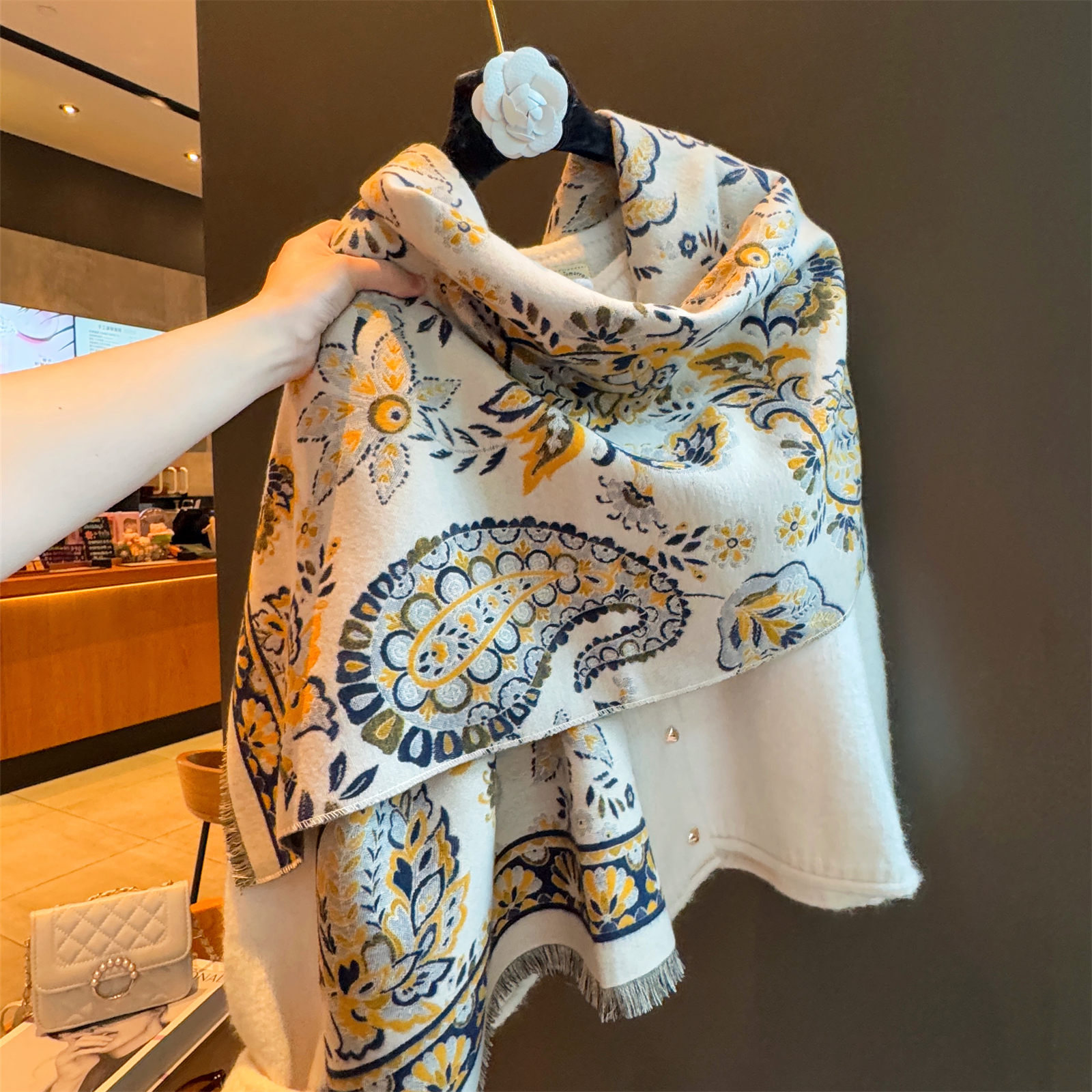 2025新款腰果花民族风双面围巾仿羊绒加厚保暖时尚多功能外搭披肩
