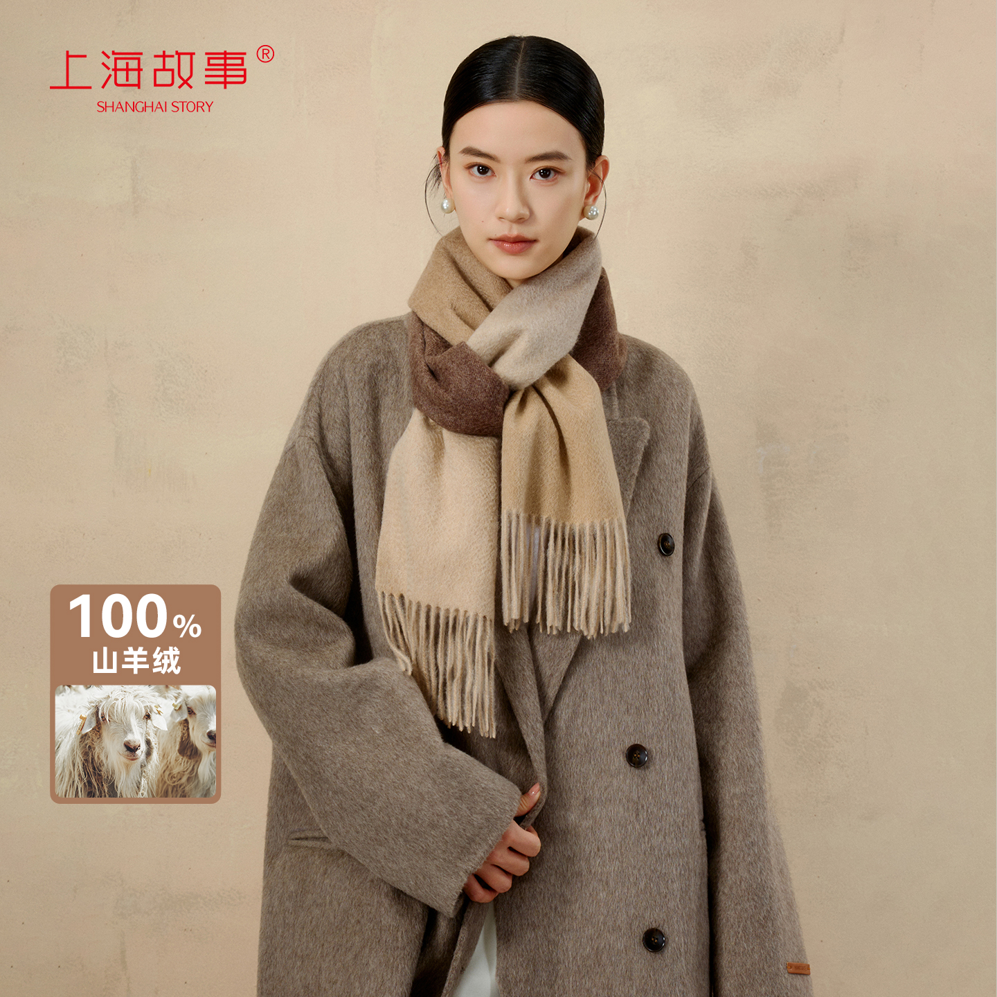 上海故事2025秋冬新款羊绒渐变围巾围脖加厚保暖披肩礼盒装送长辈