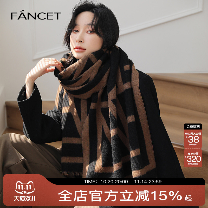 Fancet围巾女冬季轻奢羊绒羊毛围脖加厚保暖美拉德色披肩生日礼物
