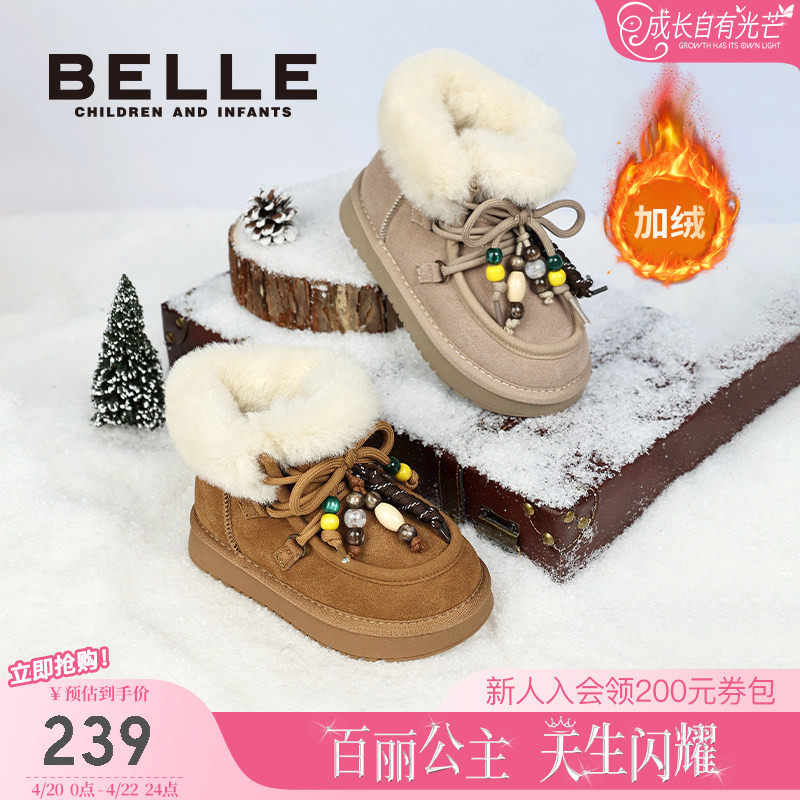 百丽童鞋女童雪地靴2026冬季新款加绒保暖儿童棉鞋中大童毛毛短靴