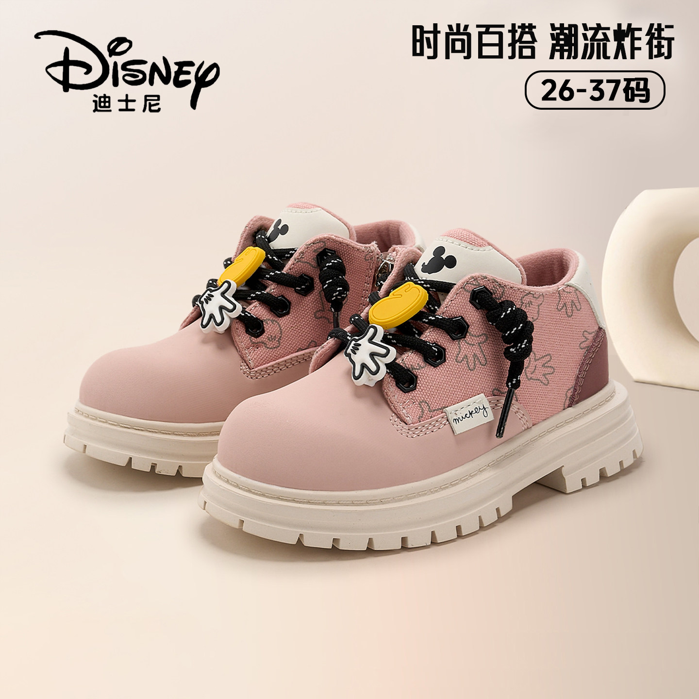 迪士尼女童马丁靴低帮儿童鞋2025秋冬季新款中大童防滑时尚短靴子