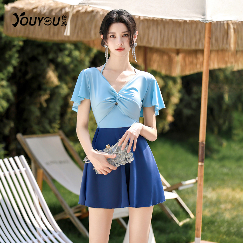 - 女式连体裙式泳衣遮肚