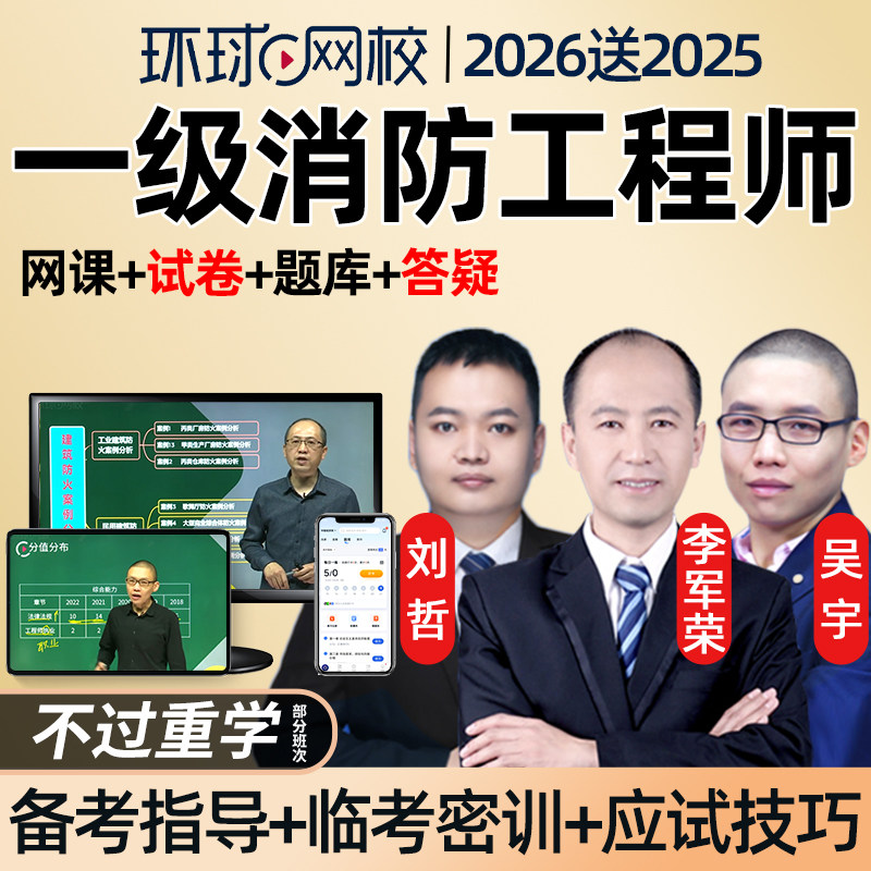 2026年环球网校一级注册消防工程师网课教材习题试卷精讲班视频安全技术实务综合能力案例分析一消历年真题考试刘哲吴宇李军荣2025