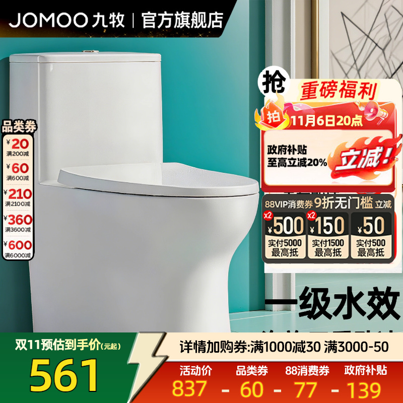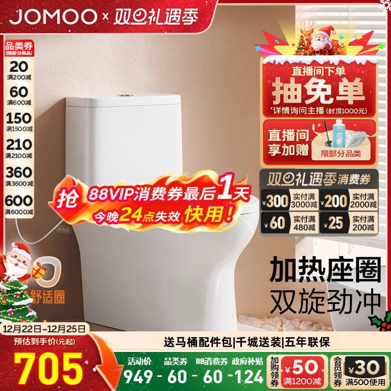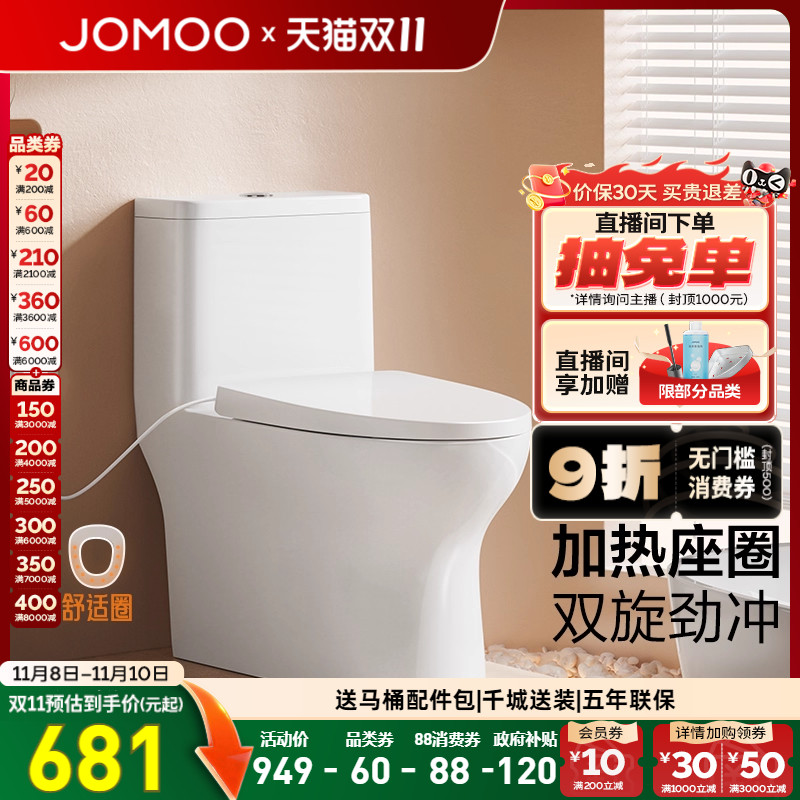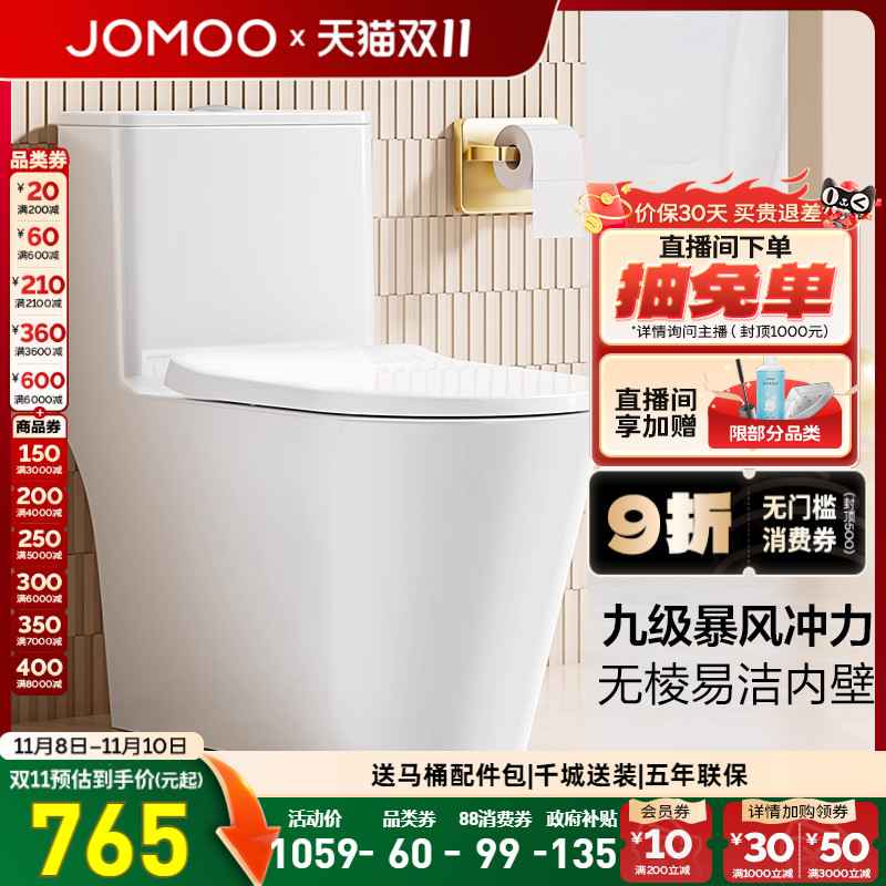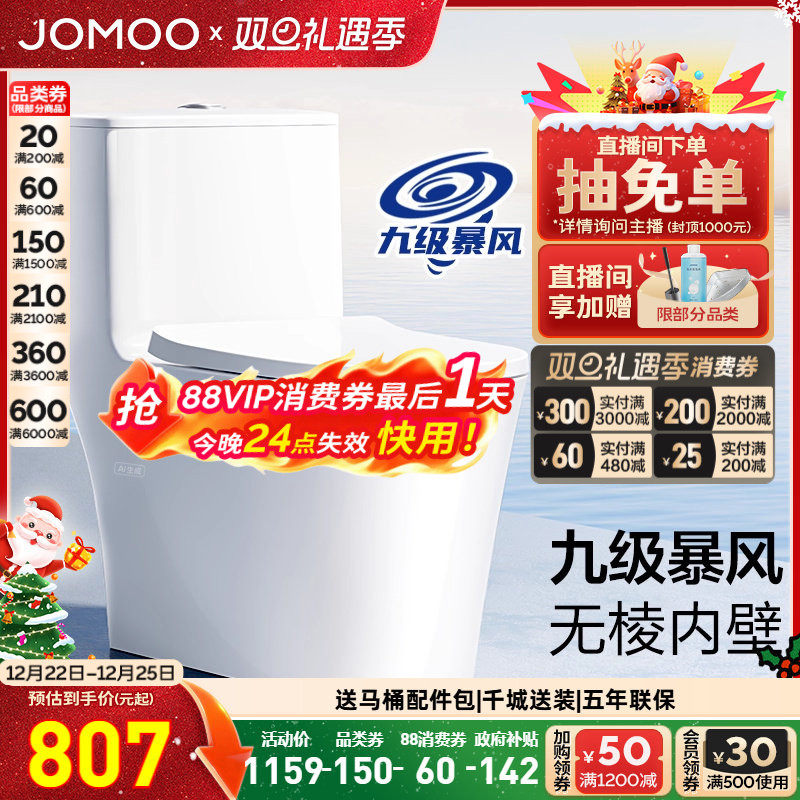 JOMOW家用抽水普通马桶小户型超旋虹吸式防冻裂防堵座坐便器坐厕