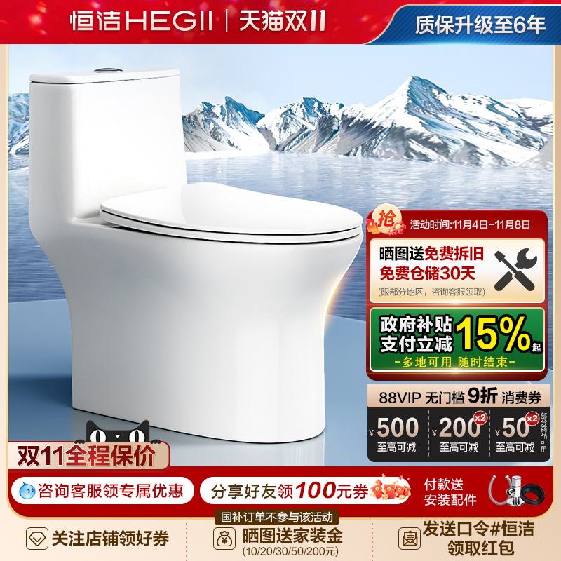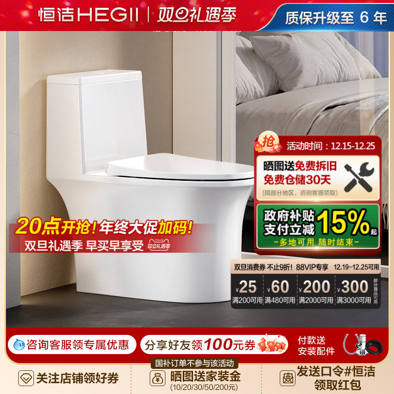 恒洁马桶家用虹吸式大冲力卫生间卫浴防溅防臭佛山普通坐便器531