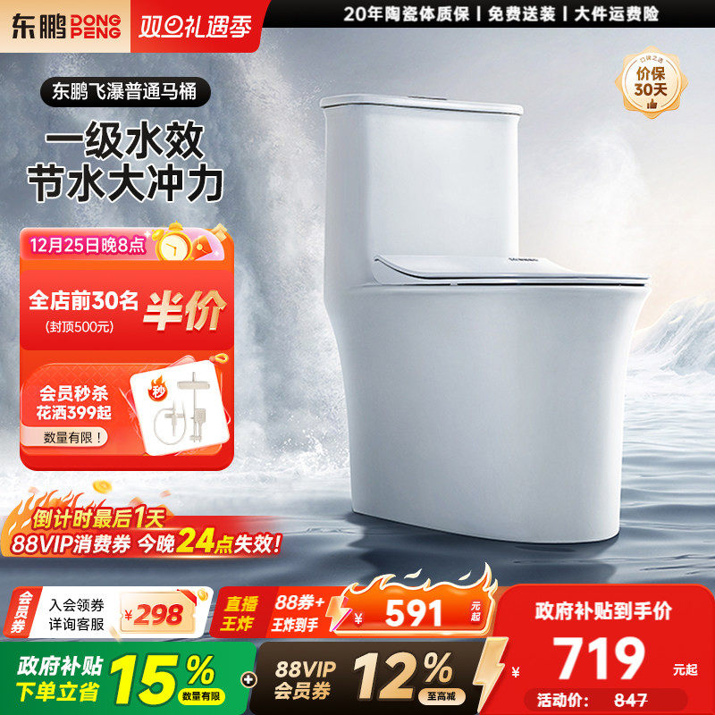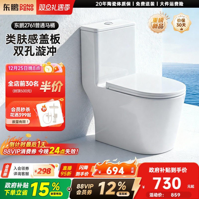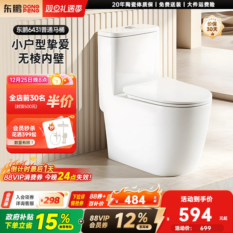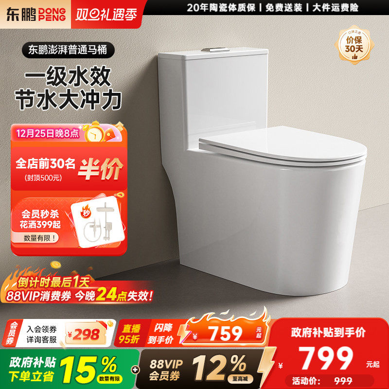 东鹏澎湃家用卫生间普通佛山马桶虹吸大冲力防堵小户型抽水坐便器