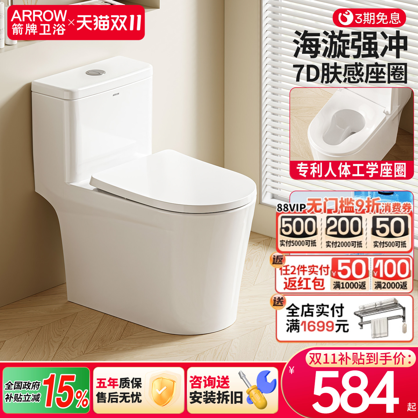 【政府补贴】箭牌卫浴抽水马桶家用普通防臭喷射虹吸大冲力坐便器