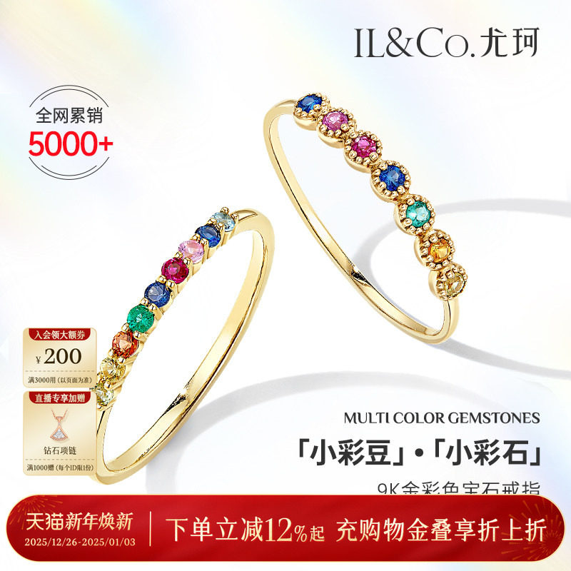 ILCO尤珂「小彩石」彩虹宝石天然18K金蓝宝石彩宝碧玺戒指排戒女