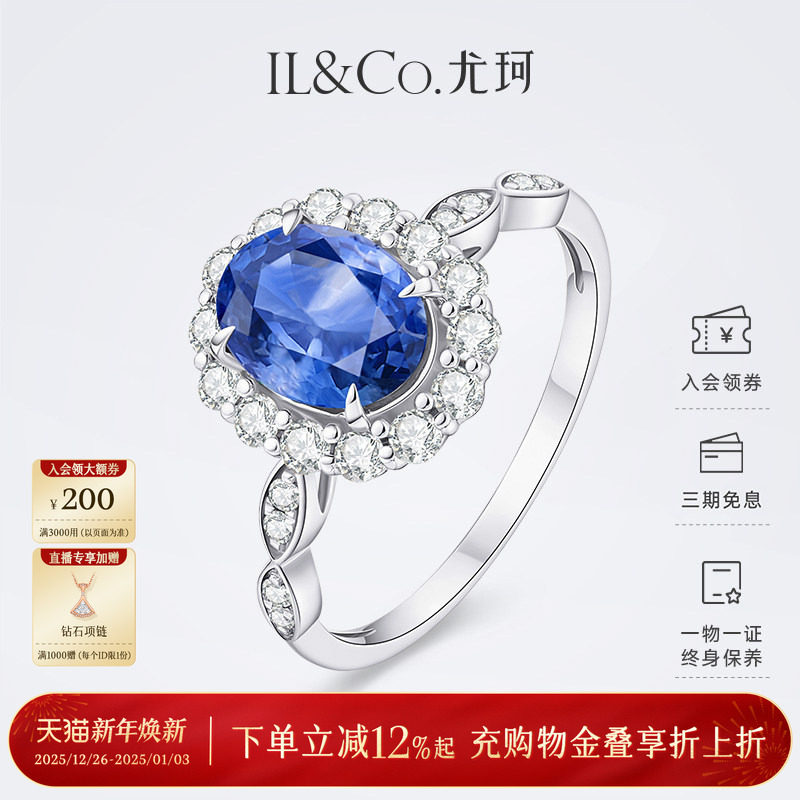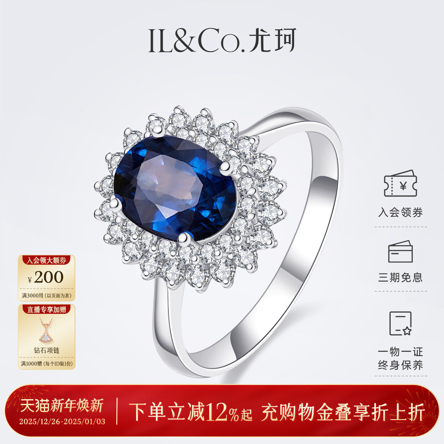 ILCO尤珂「经典戴妃款」18K金天然蓝宝石戒指钻石彩宝红宝石女戒