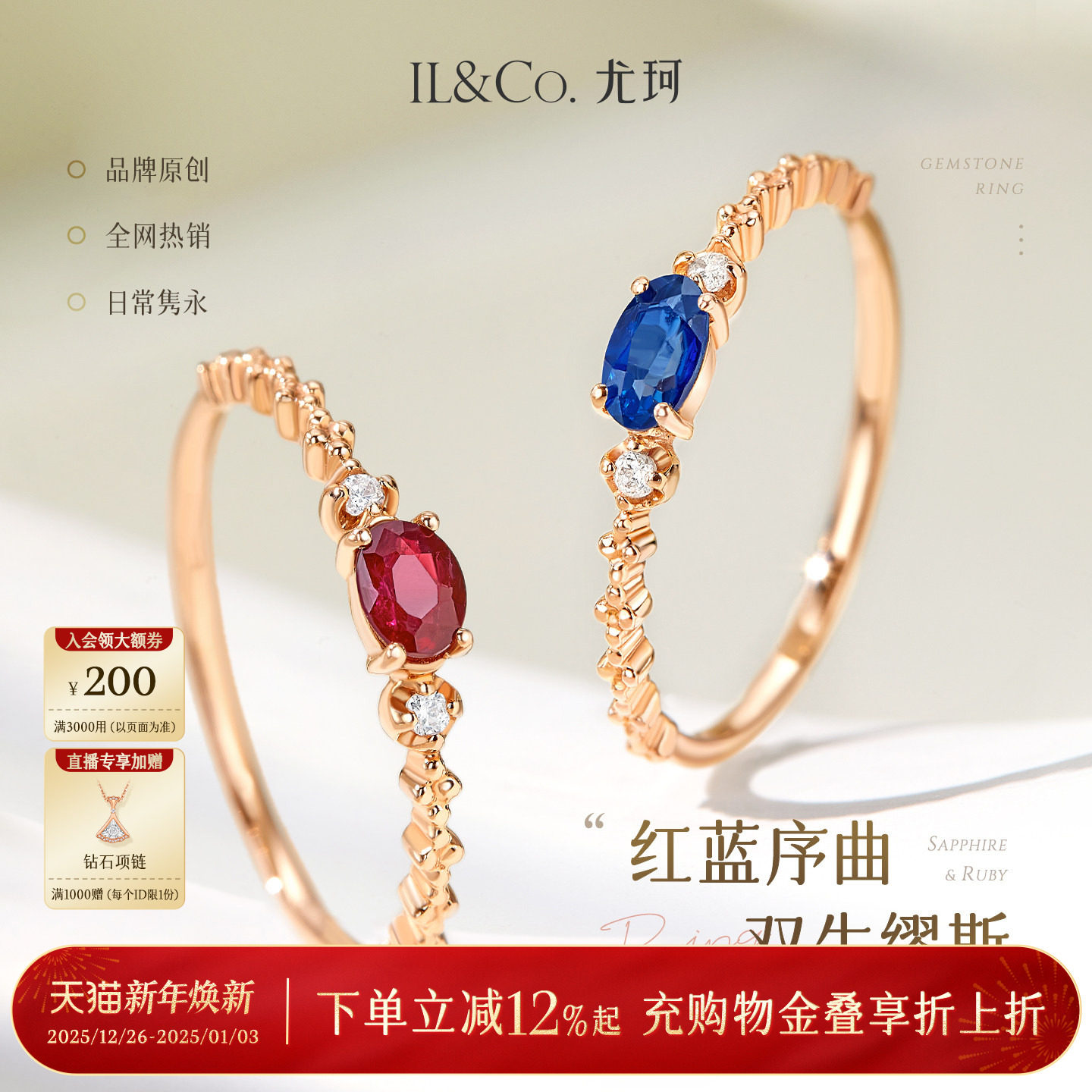ILCO尤珂「蓝茶缪斯」18K玫瑰金天然蓝宝石戒指轻奢红宝石彩宝戒