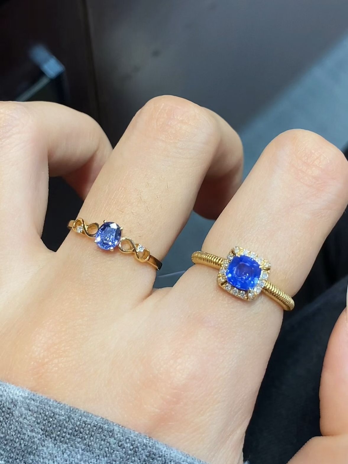 Yngel/蜜安琪天然蓝宝石戒指女新款18K金镶钻宝石戒指彩宝定制