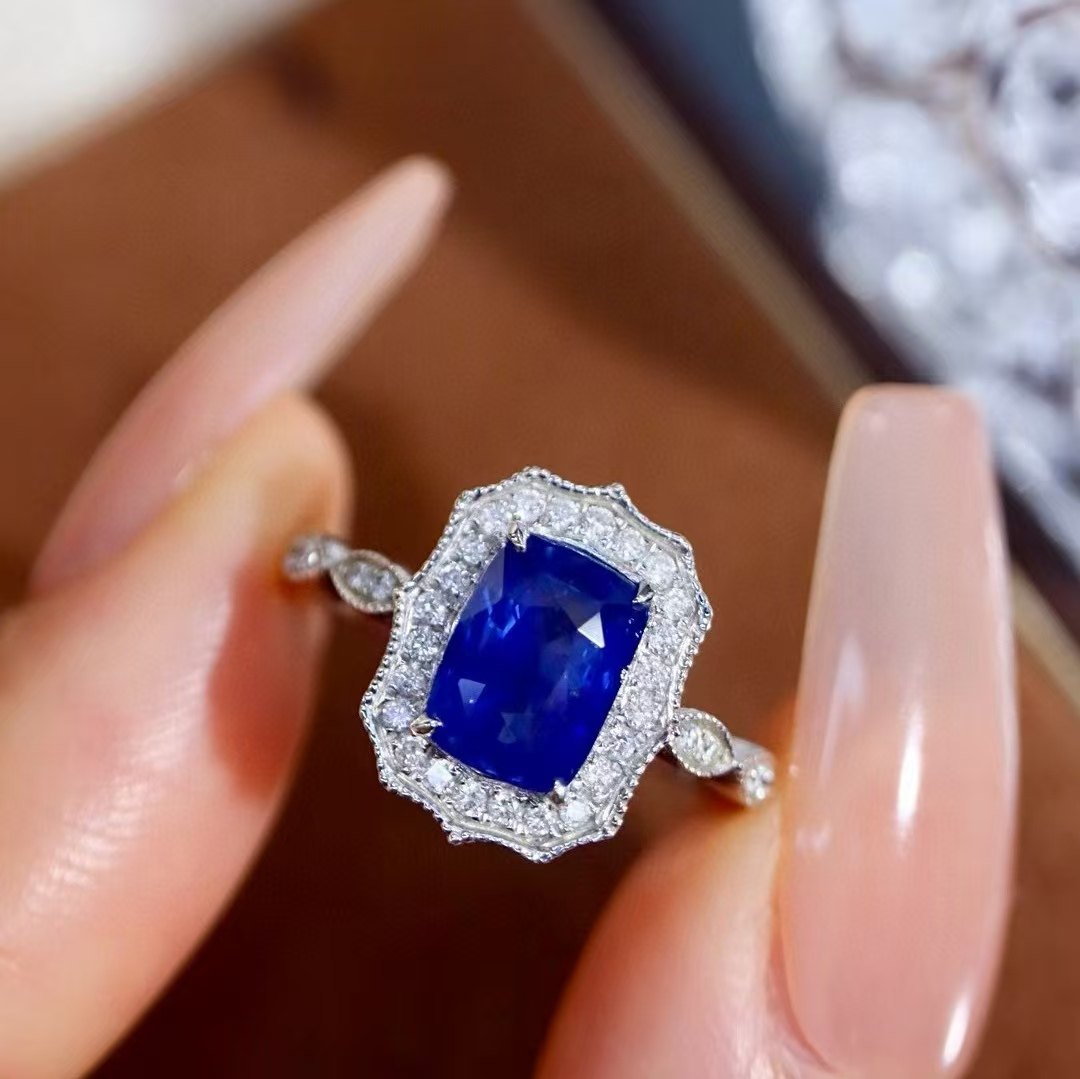 【中国地质大学】天然蓝宝石戒指 高净度,满火彩!5A级蓝宝石,